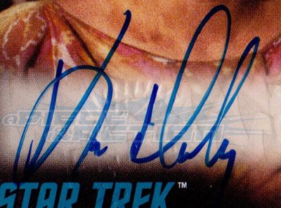 Hello all! I'm James from apieceoftheaction.net! If you're here, you are probably a Trekkie like me. Congrats on having good taste! I've been a fan of Classic Star Trek (and it's varied memorabilia) for years. One of my favorite things to collect? Autographs! Autograph collecting can be quite a task, what with all the fakes out there, so I am putting together this site to offer fellow collectors a good reference for legit signatures of the cast and crew. In most cases, these autographs are found on trading cards offered by Skybox and Rittenhouse Archives, which guarantees their authenticity. In the cases where an actor hasn't signed a card or passed away before the advent of autograph cards, the item pictured was acquired from a reputable dealer in the field and is believed to be authentic.